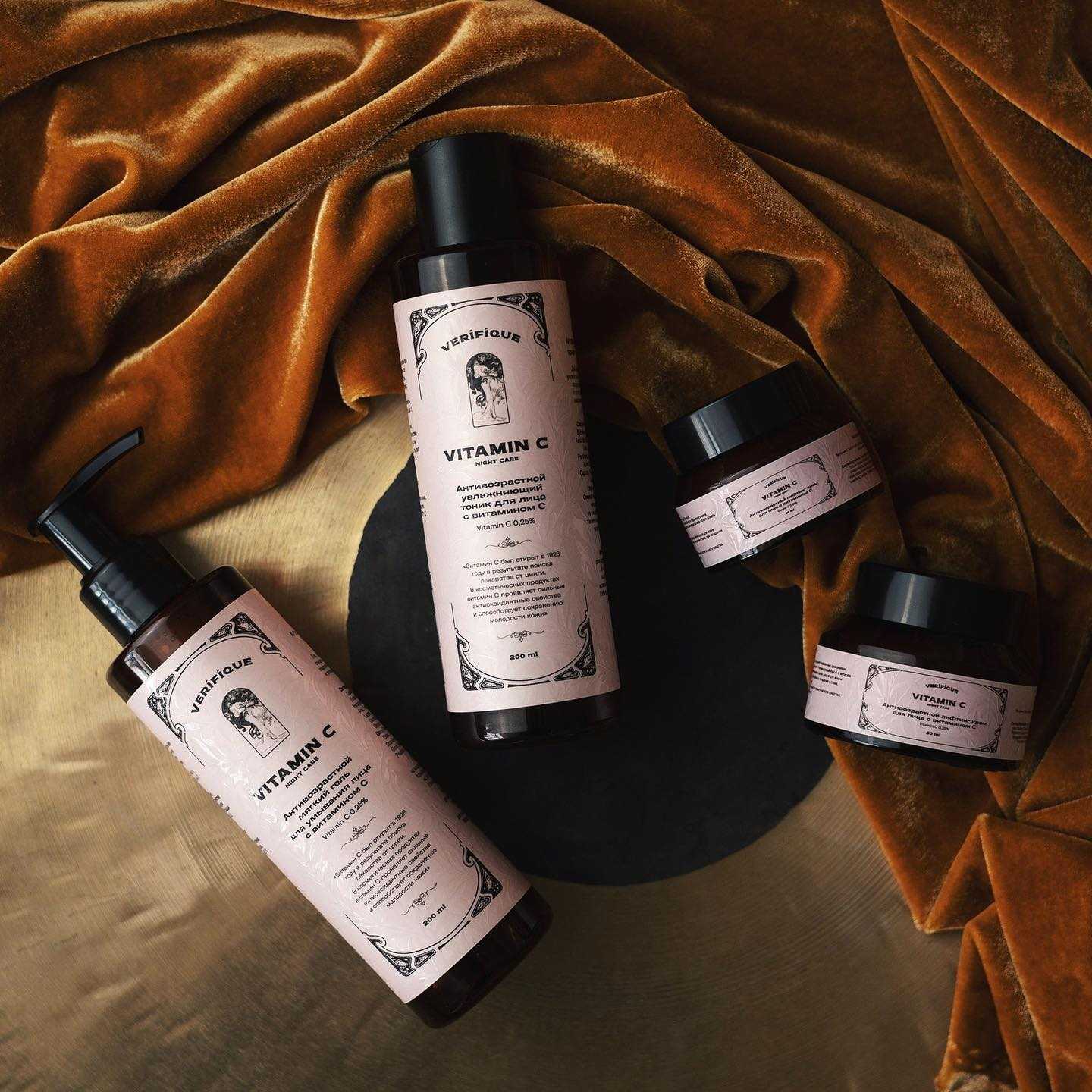 Средства с пептидом SYN-AKE обладают миорелаксирующим действием, подобным ботулотоксину. Грубо говоря, это вещество расслабляет мышцы лица и разглаживает кожу. Витамин А в составе продуктов бренда VERIFIQUE представлен в форме ретинола пальмитата, который можно и даже нужно использовать в летнее время года. Со слов Ксении, этот компонент обладает фотопротективным действием и даже разрешен к применению у беременных. Лифтинг крем с витамином С изготовлен на основе масел и обладает мощным антиоксидантный действием