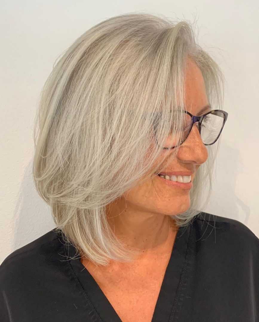 Омолаживающие стрижки на средние волосы актуальными остаются и после 60 лет, правда, если они достаточно густые. Не стоит забывать, что старение – естественный процесс, поэтому женщина должна иметь природный вид.