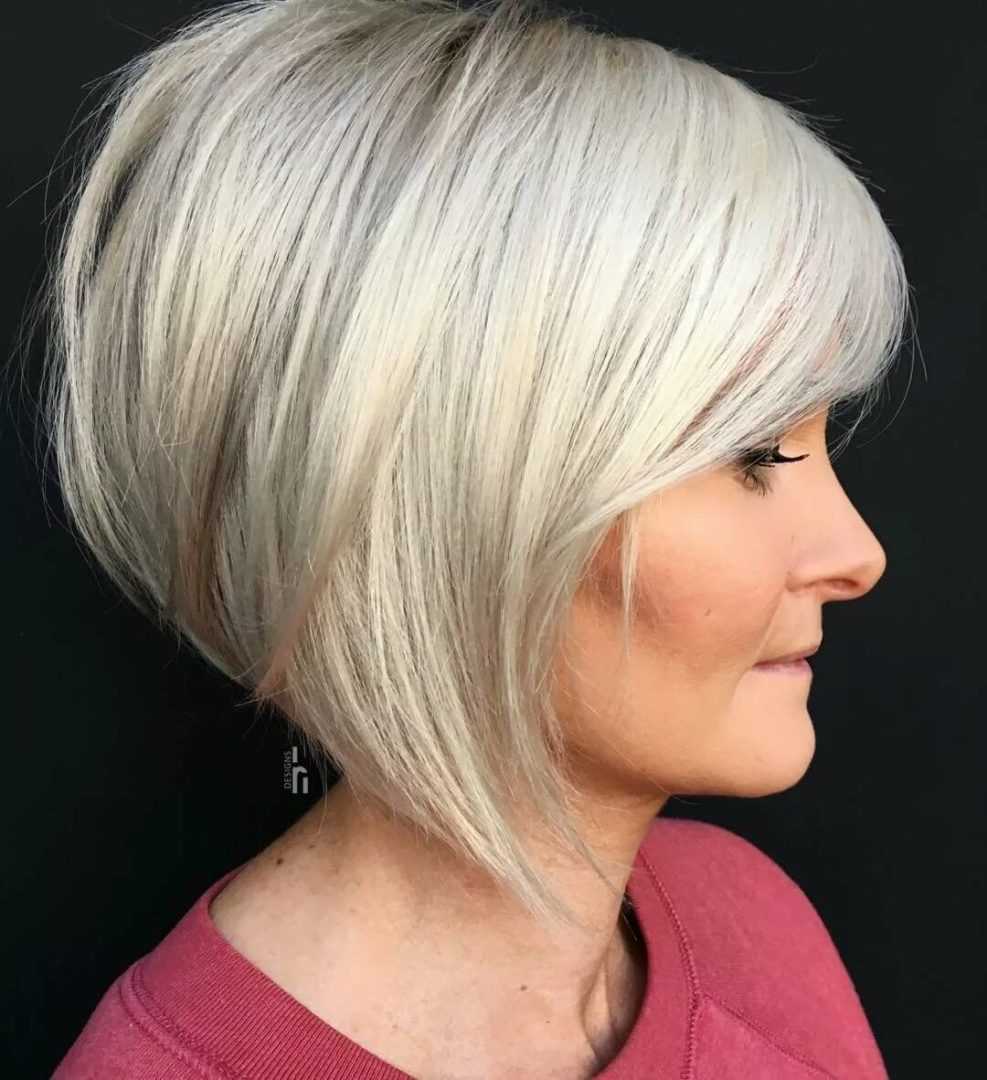 Рваная воздушная челка станет замечательным омолаживающим приемом в любом возрасте, поэтому не стоит бояться таких стрижек. Независимо от типа стрижки, женщина не должна забывать о том, что седина должна быть полностью закрашена.
