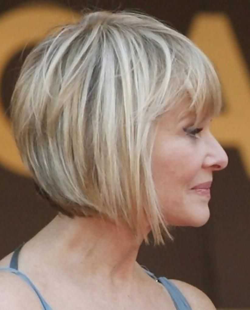 Еще одной актуальной тенденцией сезона станет наличие челки в стриже на среднюю длину волос для женщин старше 50 лет.