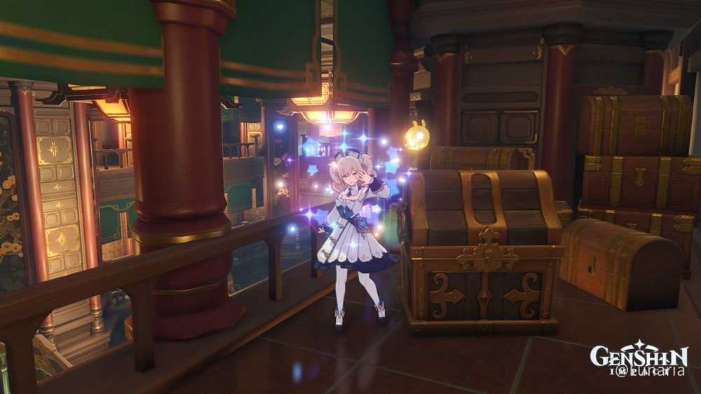 Этот чудо-сундук находится в Банке северного королевства (Ли Юэ). Да, вы все правильно поняли. Он стоит в банке и его можно просто так открыть. Находится Банк северного королевства в столице региона (см. скриншот выше). Войдите внутрь, повернитесь направо возле стойки администратора и идите по лестнице на второй этаж. Там возле груды ящиков стоит драгоценный сундук с 200 тыс. моры.