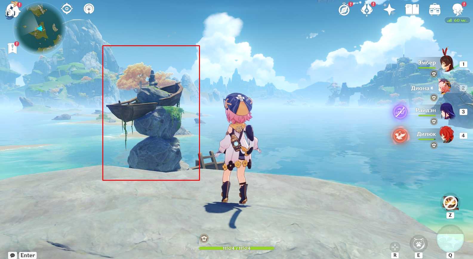 Каменный лес Гуюнь таит в себе множество секретов. Здесь есть куча сундуков разной степени редкости, геокулы, головоломки, редкое оружие и многое другое. Во время исследования этой местности вы, вероятно, видели рыбацкую лодку, застрявшую на каменных глыбах. Заберитесь в нее и разрушьте столб из камней в центре. Как только вы разобьете камни, на носу лодки появится драгоценный сундук.