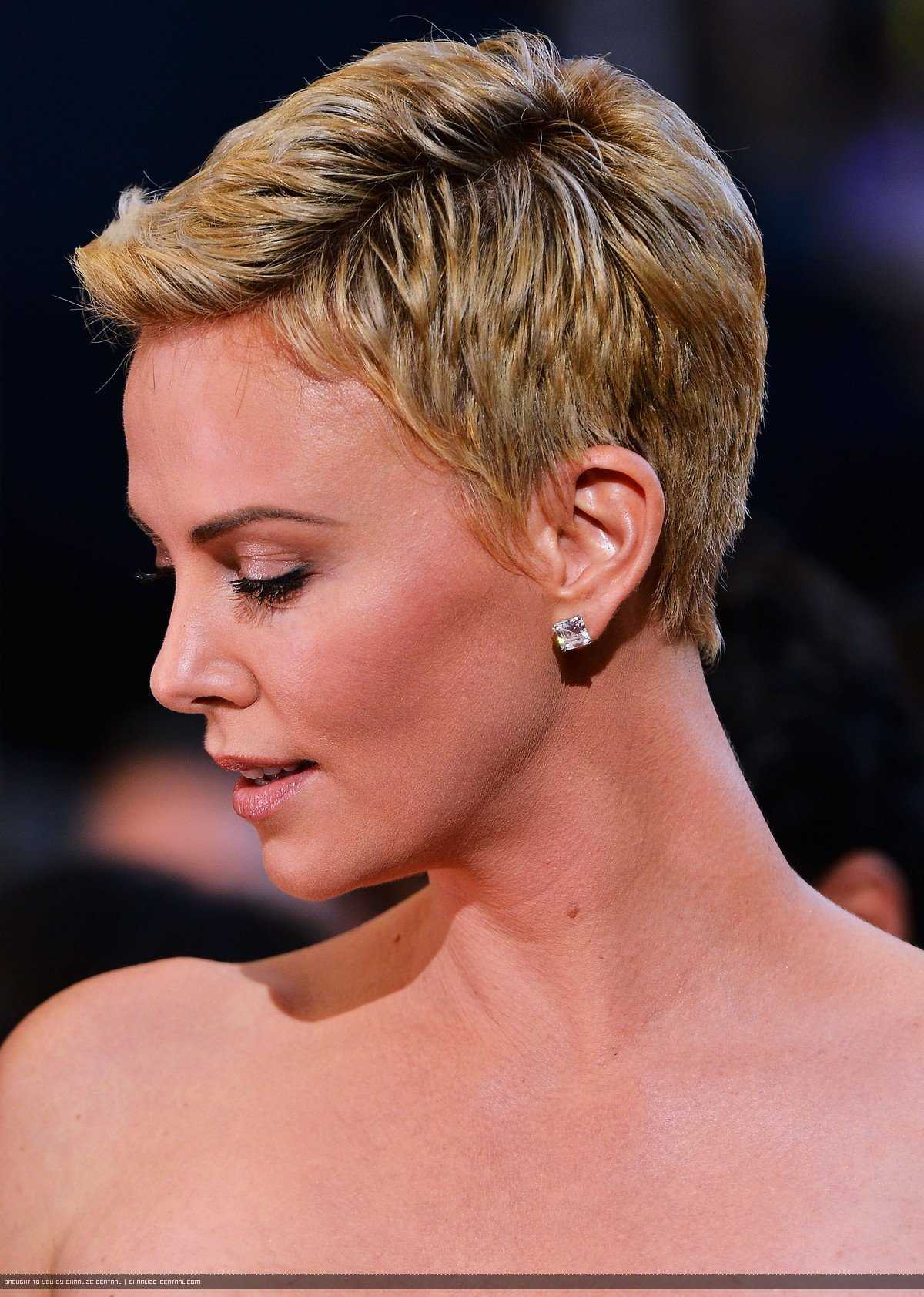 Если изучить свежие снимки актрисы, то можно заметить, что новая стрижка придала ей не только дополнительного шарма, но и подчеркнула мускулитость. Самая актуальная информация из мира моды, красоты, культуры, светской жизни, гастрономии, путешествий, а также — психология отношений, обзоры модных гаджетов. По словам же самой актрисы, она никогда не считала себя красавицей и чувствует себя прекрасно, умывшись утром и смазав губы гигиенической помадой. Обычная прическа терон все эти нюансы практически не подчеркивает, однако именно мальчишеская стрижка сделала на них акцент. На церемонии оскар 24 февраля 2013: супер короткая прическа шарлиз терон только подчеркивает ее царственную красоту.