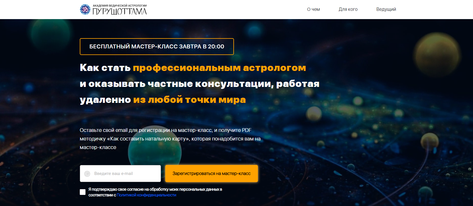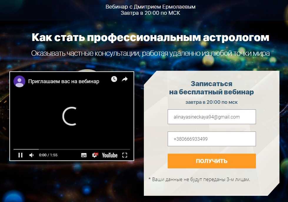 Основной конвертер в продажи — бесплатный автовебинар по астрологии. Он проходил ежедневно вечером. Чтобы обеспечить высокую доходимость использовали несколько сервисов: