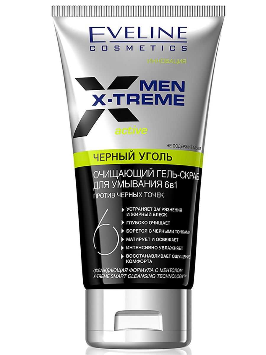 Eveline Cosmetics Очищающий гель-скраб для умывания 6 в 1 Men X-Treme Черный уголь