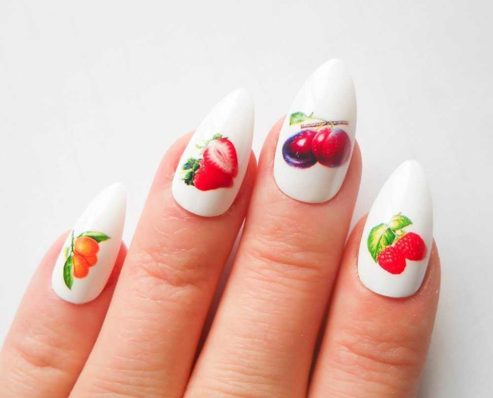 Фрукты — еще одна ассоциация с летом. В отпуске мы чаще балуем себя экзотическими плодами. А их изображение на ногтях может сделать маникюр по-летнему веселым и ярким. Подобнее о нейл-дизайне с фруктами мы писали .