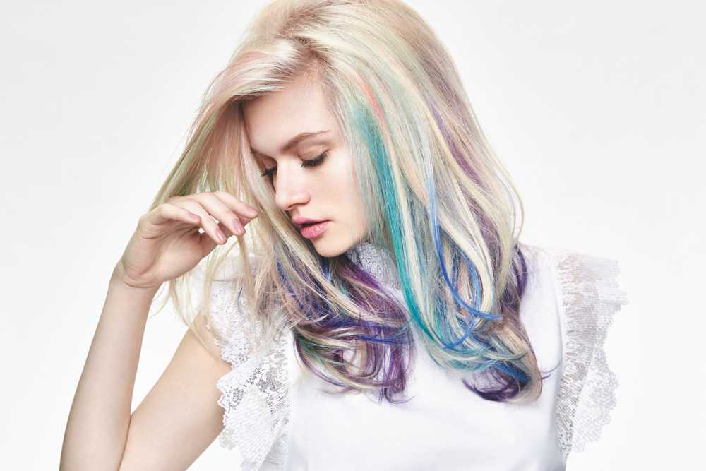 Еще креативнее выглядят два цвета на одной пряди – смело экспериментируйте с оттенками! Цвет сохраняется в течение шести часов, а чтобы добиться более длительного эффекта, покройте их лаком.