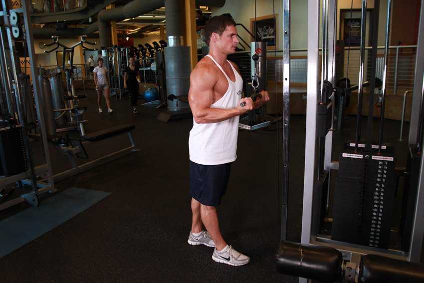 Сгибание рук на бицепс на нижнем блоке с канатной рукоятью