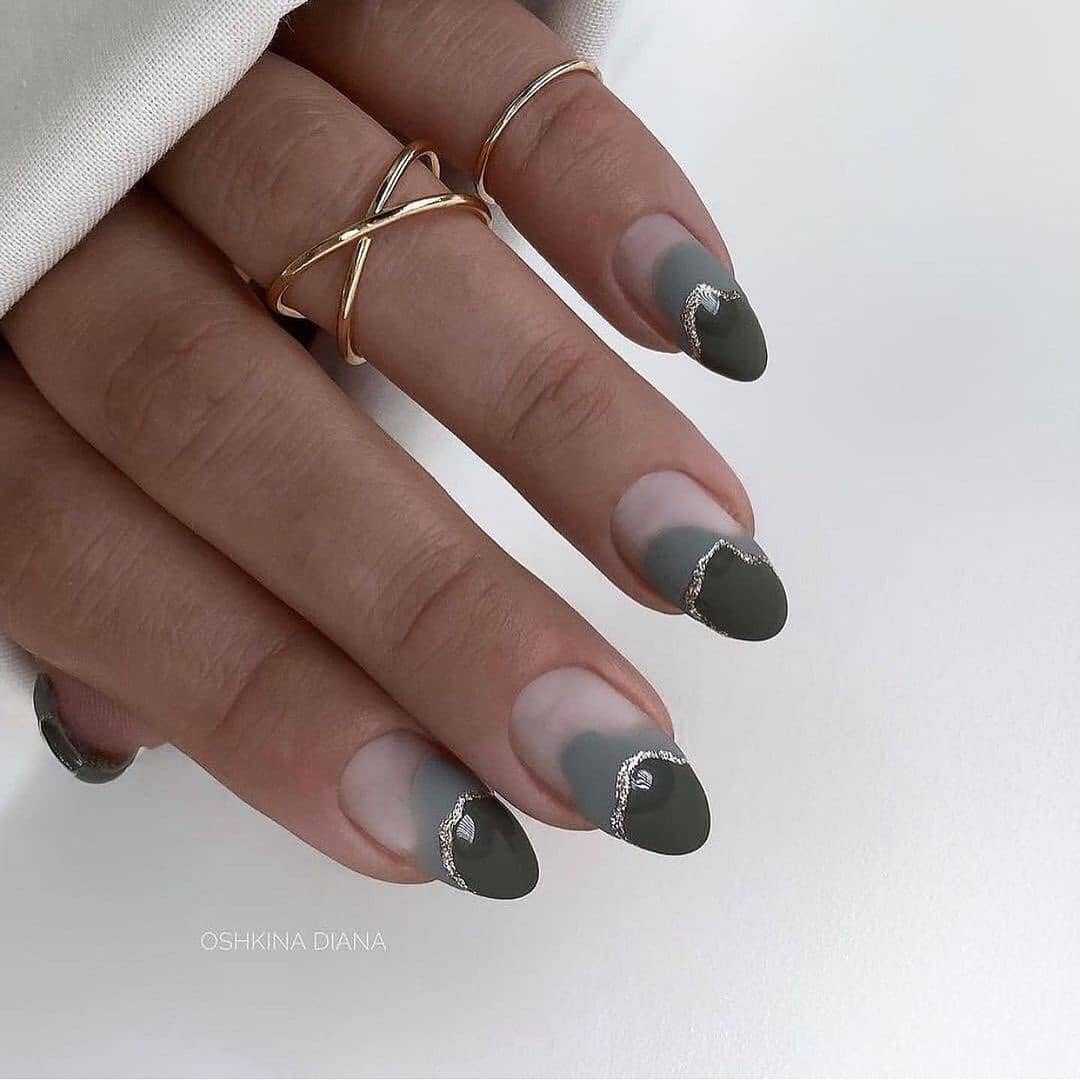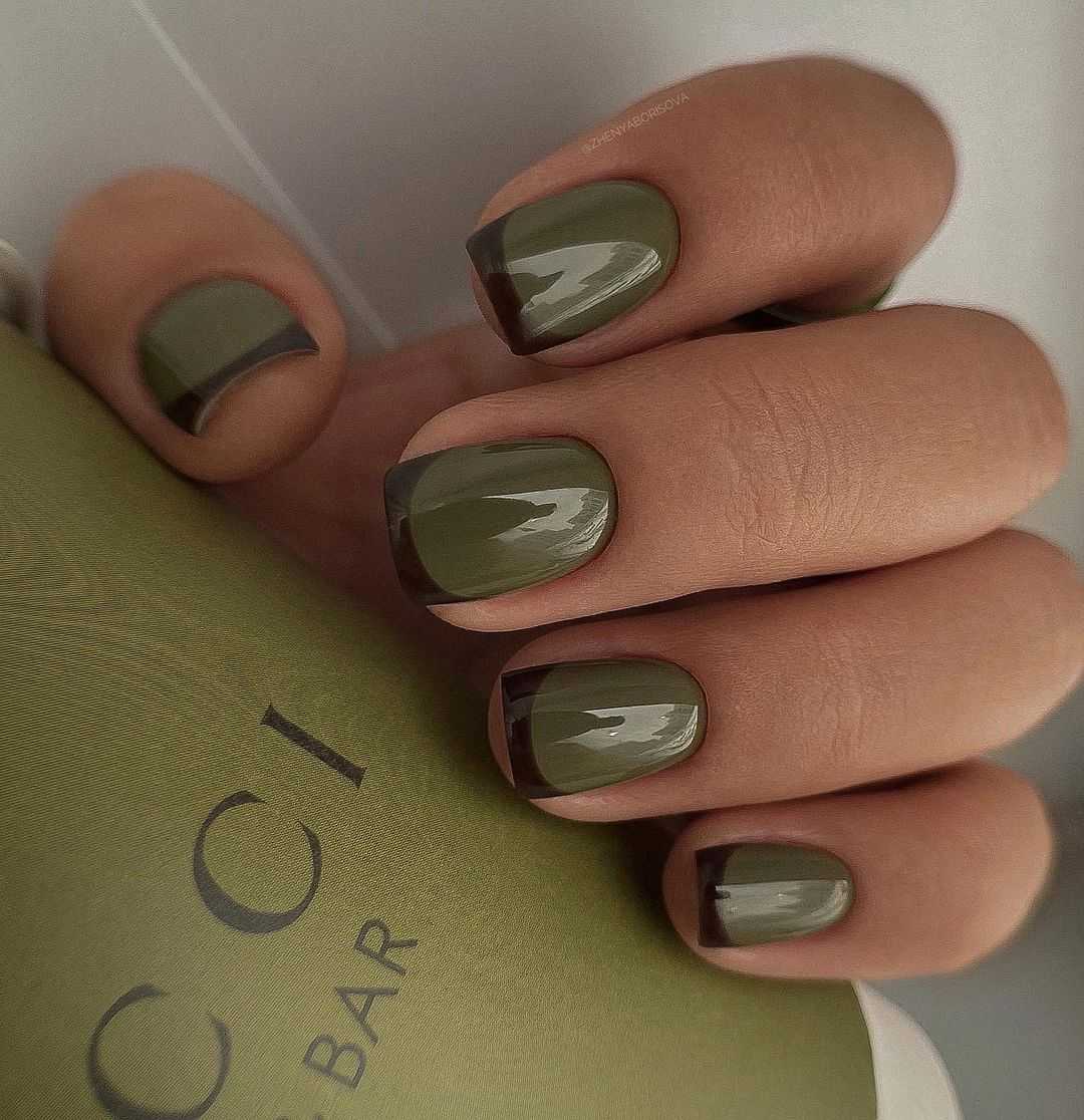 Нейтральный цвет, хорошо смотрящийся на длинных миндалевидных или овальных ногтях. Оливковый маникюр подойдет обладательницам смуглой и загорелой кожи.