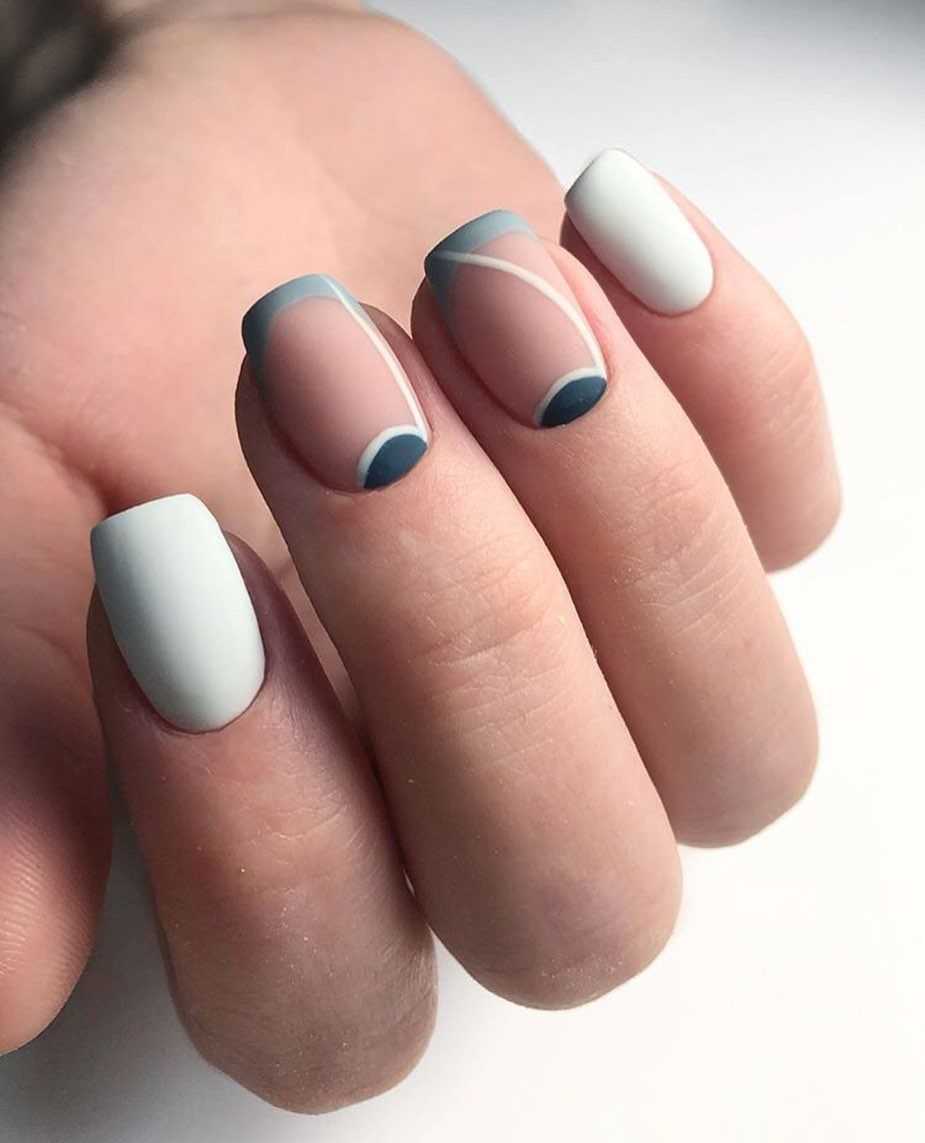 Универсальные варианты, подходящие под любую длину и форму ногтей. Они отлично смотрятся в сочетании с весенне-летними трендами, а голубые пастельные тона задают тренд в зимнем маникюре 2023 года.
