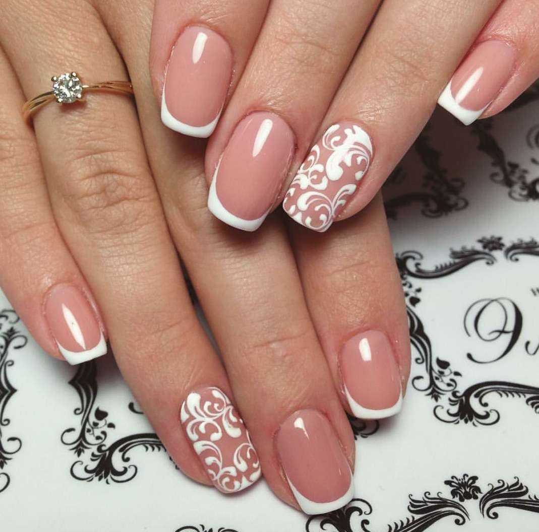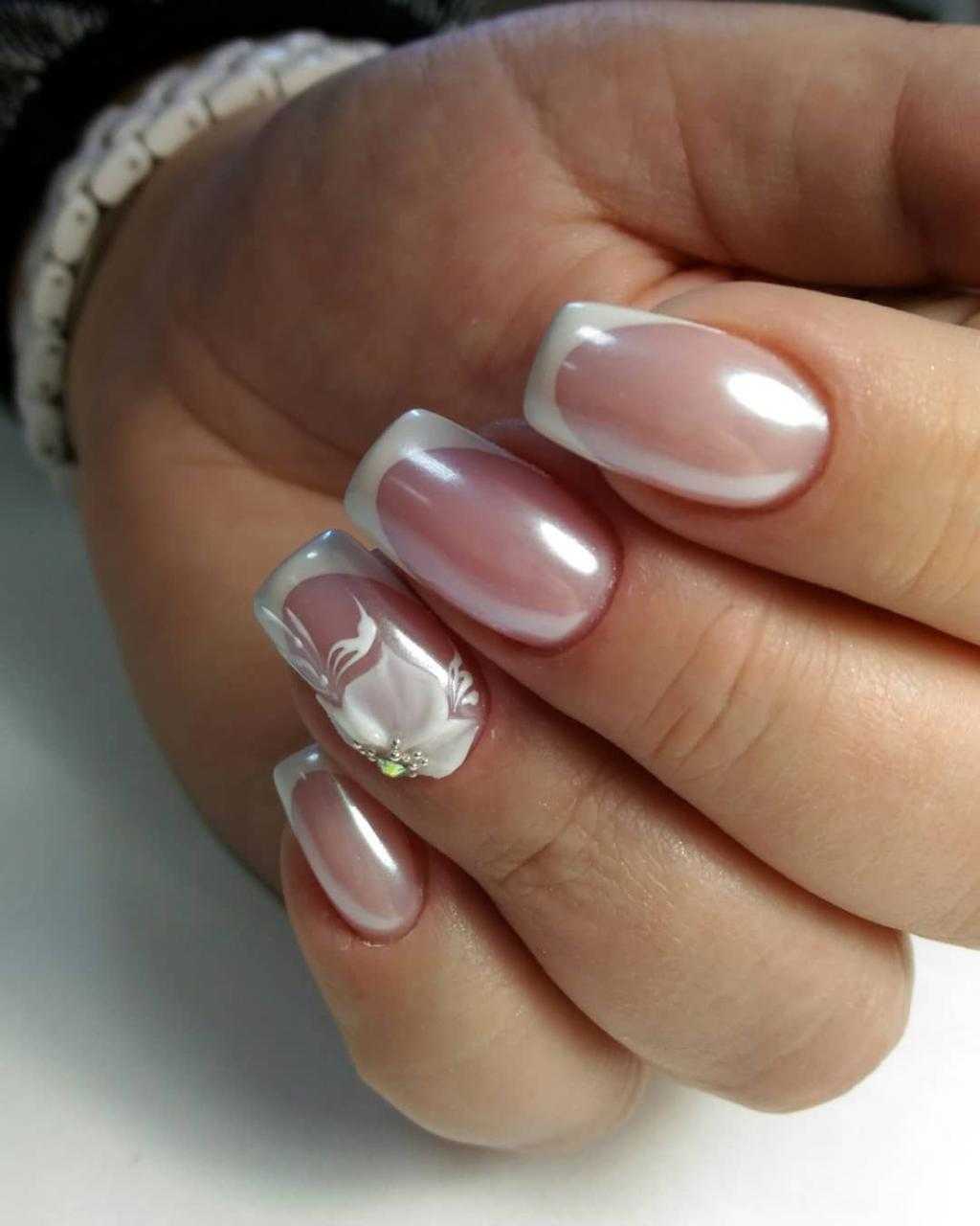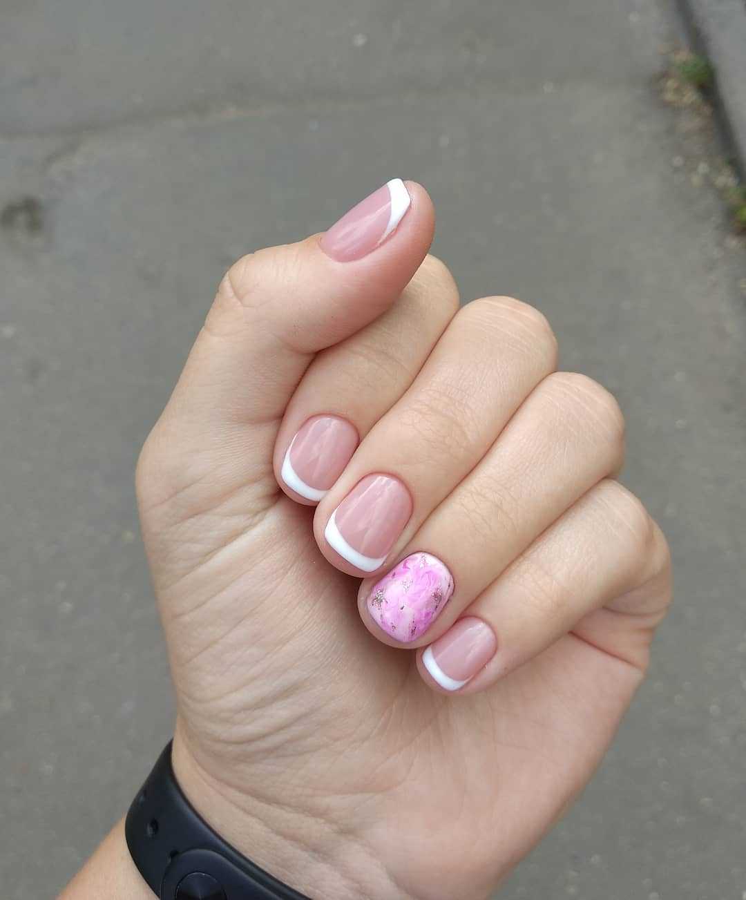 - классическое сочетание белого френча с нежно-розовой подложкой;