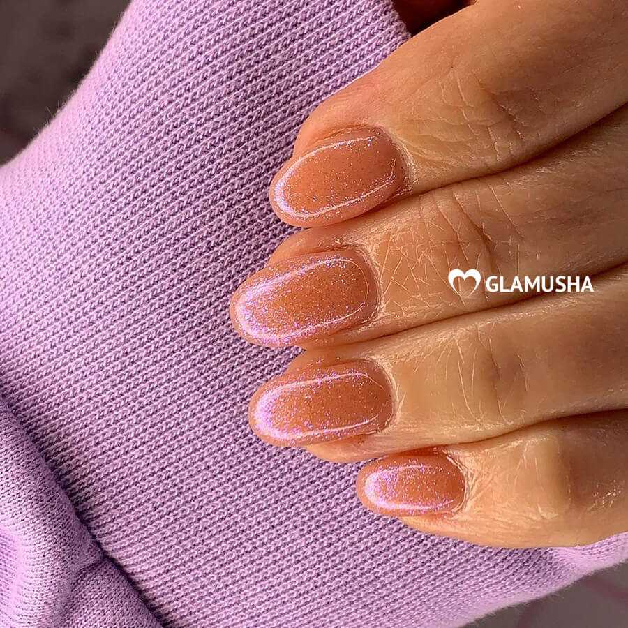 Гармонично смотрится пастельное покрытие в дуэте с жемчужной втиркой. Ноготь переливается мерцающими перламутровыми частицами. Вариант идеален для классического и лунного маникюра. Втирка здесь играет роль основы для последующего нанесения художественной росписи.