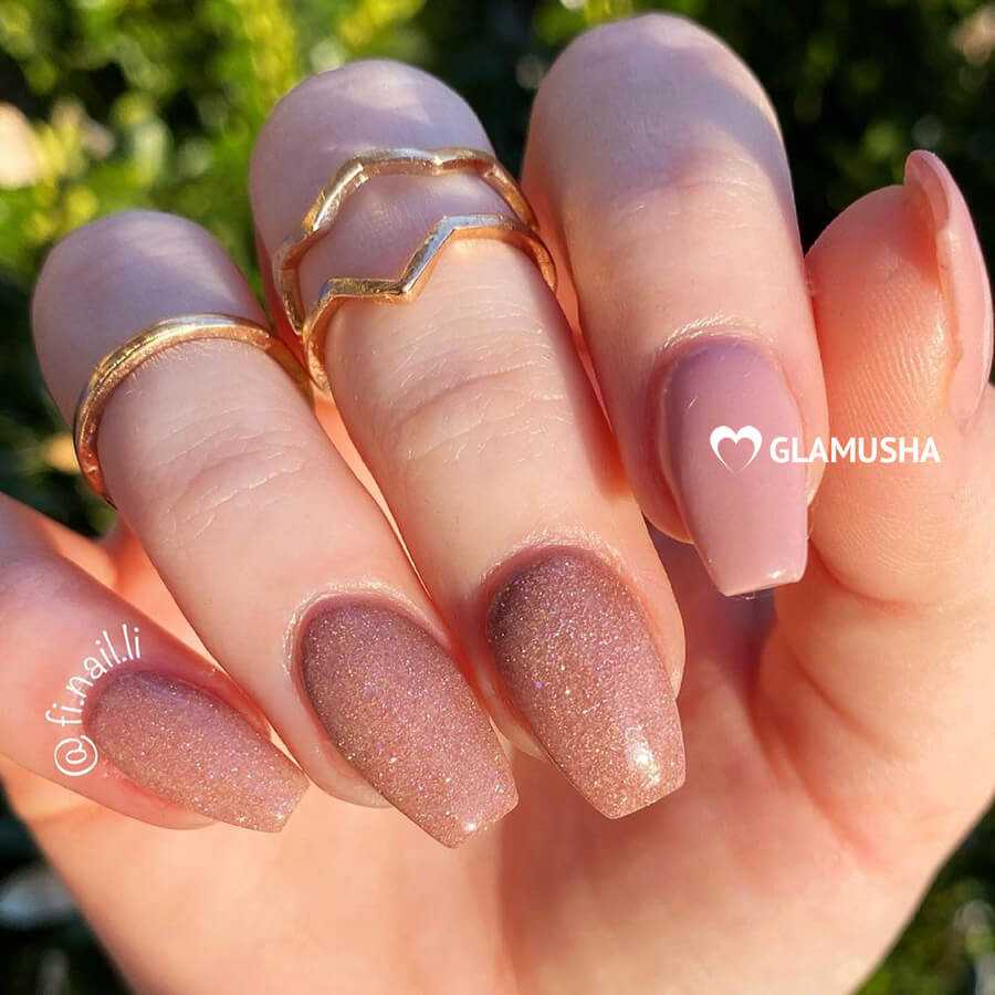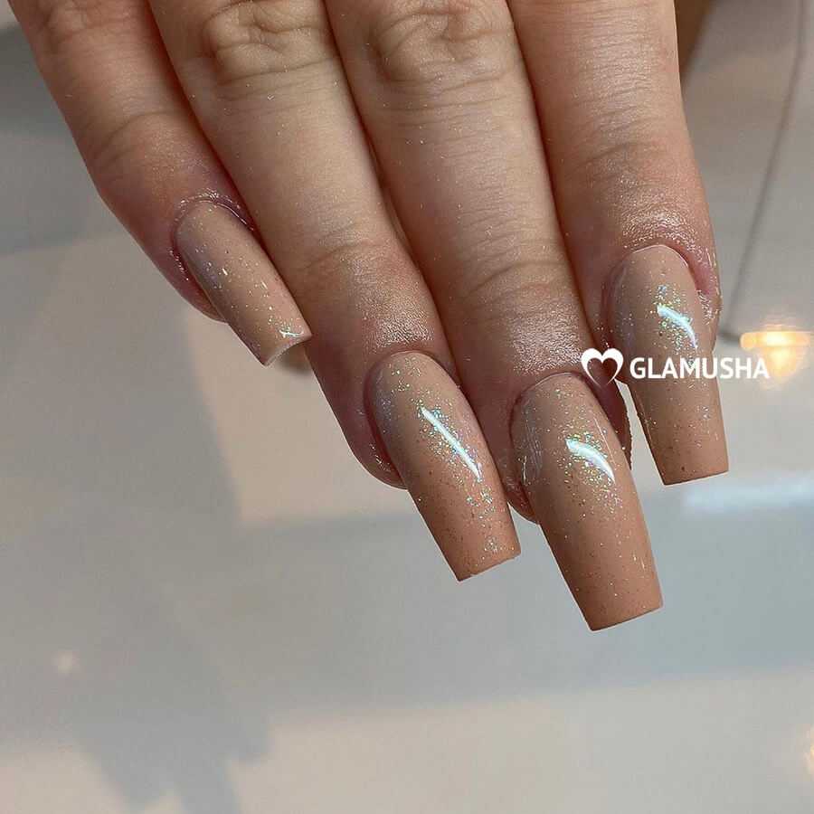 Если вы хотите сделать ногти с ярким акцентом, но при этом на базе нюд, то лучше всего подойдут блестки! Это отличный вариант как для длинных, так и для коротких ногтей. Вот несколько вариантов, которые помогут вам добавить блесток в ваш образ: