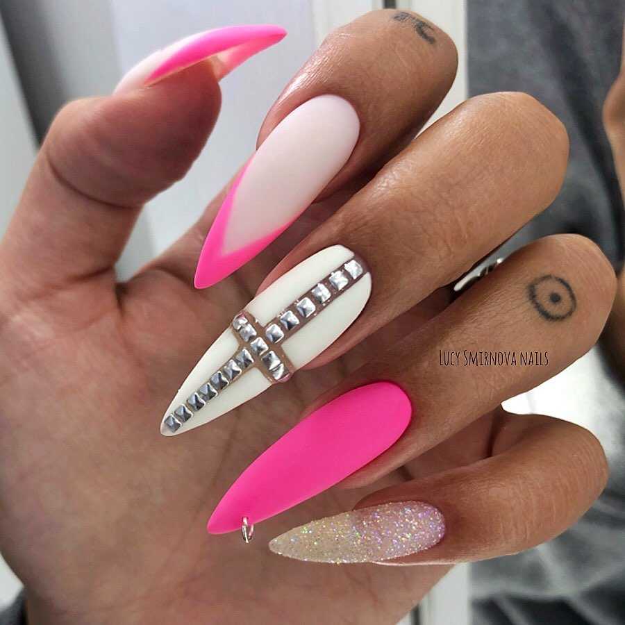 Для формы «стиллет» идеально подходят следующие варианты оформления ногтей: