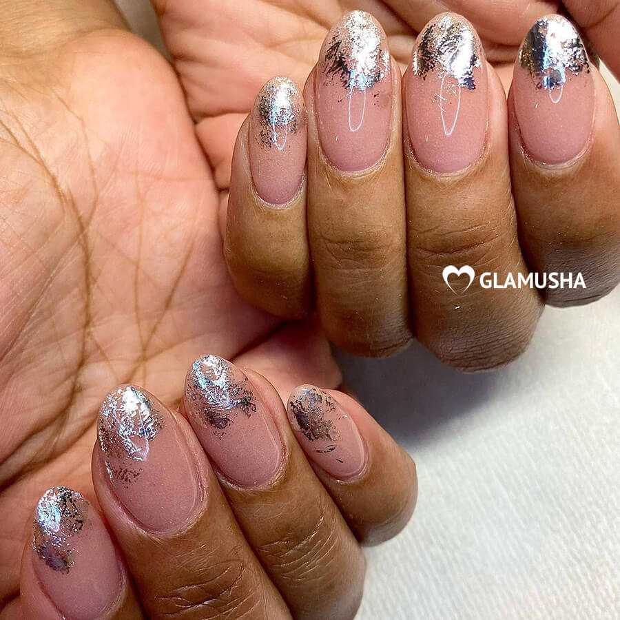 Вряд ли мелкое разбитое стекло можно отнести к новшествам текущего сезона, но благодаря его великолепию, модный дизайн ногтей 2019 до сих пор находится на пике популярности. Мелкие фрагменты фольговой голографии, нанесенные на подготовленную ногтевую пластину, со стороны схожи с хрустальными осколками. Отсюда и пошло название маникюра.