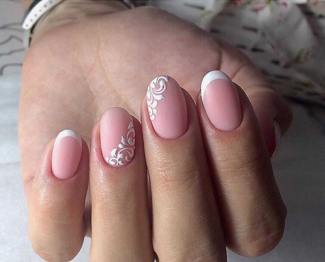 Текстура матового нейла получается бархатистой. Ногти, маникюр выглядят нежно и изящно. В этом году матовый французский дизайн выполняют: