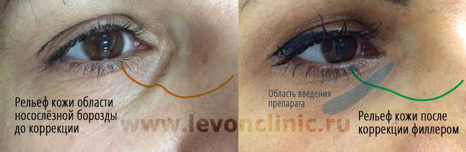 инъекциям филлеров. В этом случае принципы коррекции совпадают с процедурой коррекции носослёзной борозды.