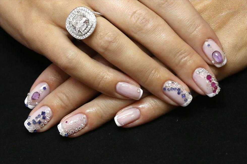 Дорогой нейл-арт их не запрещает, и даже приветствует использование сверкающих камешков. Однако в минимальных количествах — буквально на 1–2 ногтях.