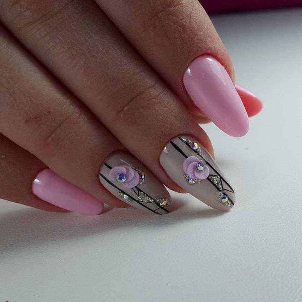 Миндальное оформление имеет округлую форму с зауженным кончиком, которое по внешнему виду напоминает миндальный орех. Миндальные ноготки внешне очень похожи на натуральные, рукам и пальчикам они придают утонченный, женственный вид. Но данная форма очень хрупкая, поэтому делать ее рекомендовано на искусственных типсах либо укрепить натуральные ногтевые пластины гелем или акрилом.
