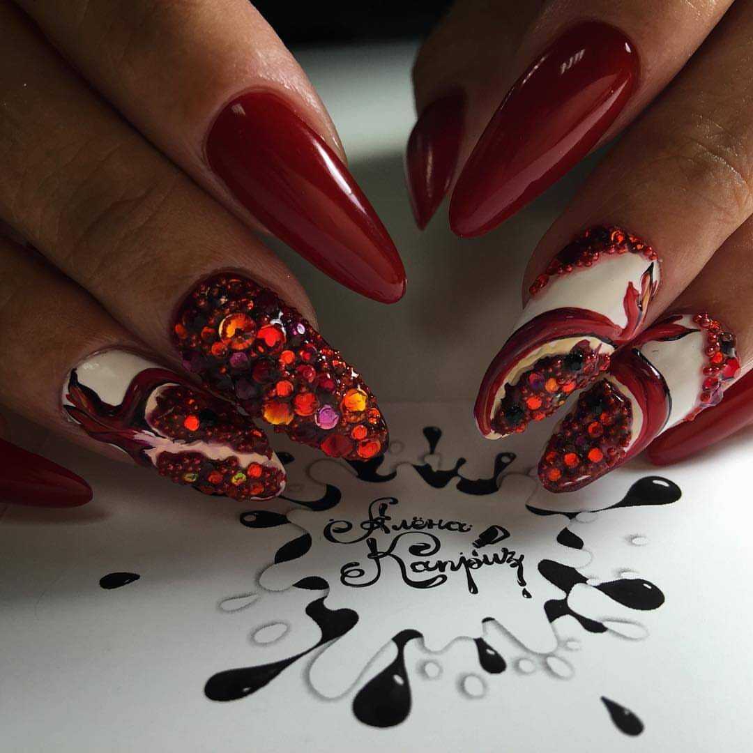 Объемный маникюр часто используется в повседневных образах. Чаще всего это простые нейл-арты с акрилом, «сахаром», пайетками и стразами. Для особых случаев просто не обойтись без гель-пасты и гель-пластилина, которые позволяют почувствовать себя настоящим скульптором.