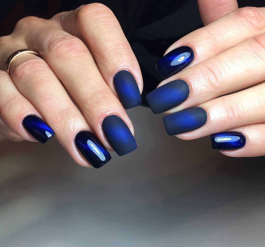 Сверкающий маникюр, отдающий в металлический оттенок, сам по себе воспринимается как роскошь. Все-таки есть что-то таинственное в переливах, игре цвета на сапфировых и изумрудных ноготках, особенно длинных. Золотой же добавит внешнему облику шика и элегантности. После появления в тренде синих теней для глаз закономерно ожидать подобный лак. И обязательно – на коротких ноготках. На брендовых показах было продемонстрировано большое число вариаций: