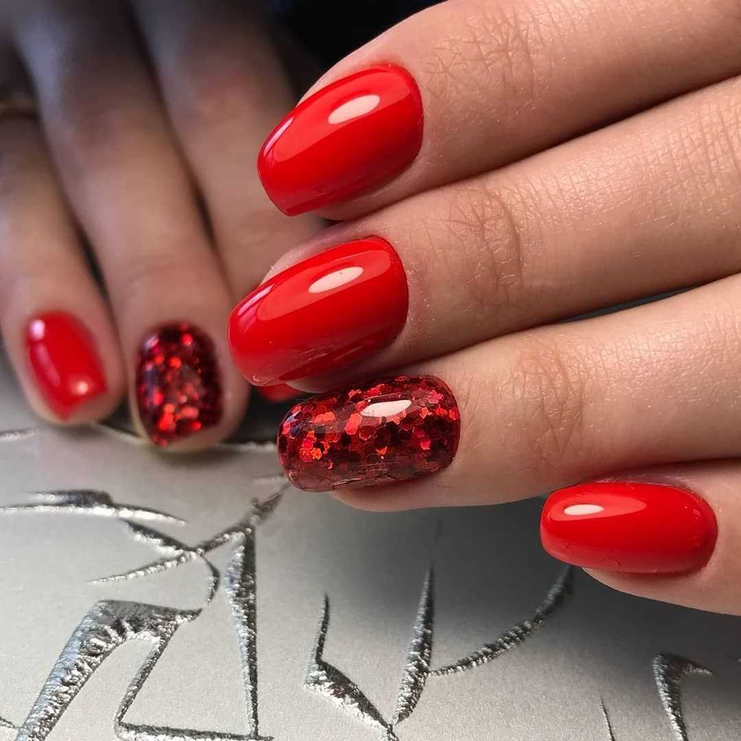 Что же касается красного, то для осеннего маникюра рекомендуют выбирать более приглушенные оттенки. Например, гранатовые, рубиновый будут актуальными осенью 2021. Дополнить базу можно цветочным декором. Два ногтя можно оформить крупными стразами или глиттерами мелкого размера.