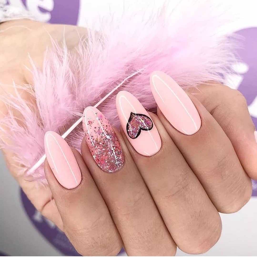 Не обошли стилисты и вниманием маникюр с блестками, однако, сейчас встречаются несколько разновидностей. Классический nail art с блестками предполагает цветное или прозрачное базовое покрытие, поверх которого наносится топ с блестящими частичками. Интересный дизайн с блестками получается и в том случае, если блесток мало и они правильной формы — создается ощущение, что к ноготкам прилипло несколько праздничных конфетти