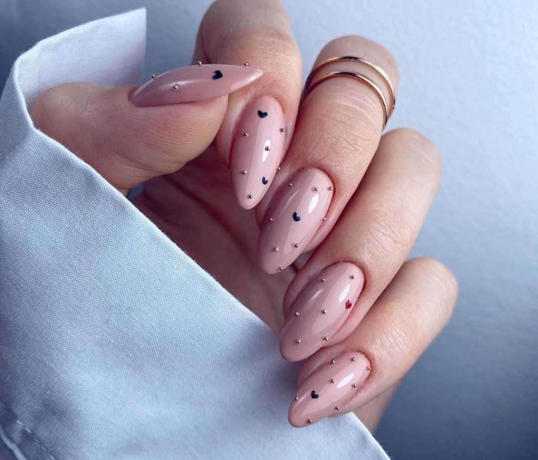 - Нюдово-розовый — приглушенный розовый оттенок лака, который можно сочетать с многими видами дизайна ногтей.