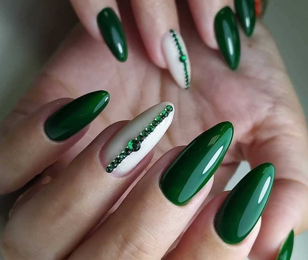 Этот эффект делается с помощью специального магнита. «Кошачий глаз» не всегда украшает каждый палец. Такой вариант можно выбрать в качестве украшения в стиле фэн-шуй, подчеркнув один или два ногтя. Также он хорошо смотрится в ансамбле с другими украшениями. Одним из популярных решений является изумрудная втирка. Но в этом случае покрытие необходимо наносить на разные ногти.