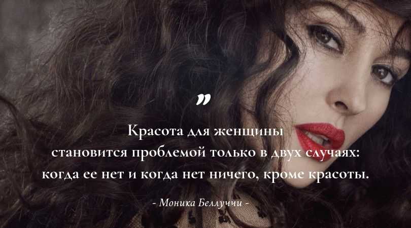 Не раз в своих интервью Моника Беллучи заявляла, что согласна с высказыванием «Время убивает все» из фильма «Необратимость». Однако личный пример актрисы говорит об обратном — ее красоту не возможно разрушить годами, она просто становится иной.