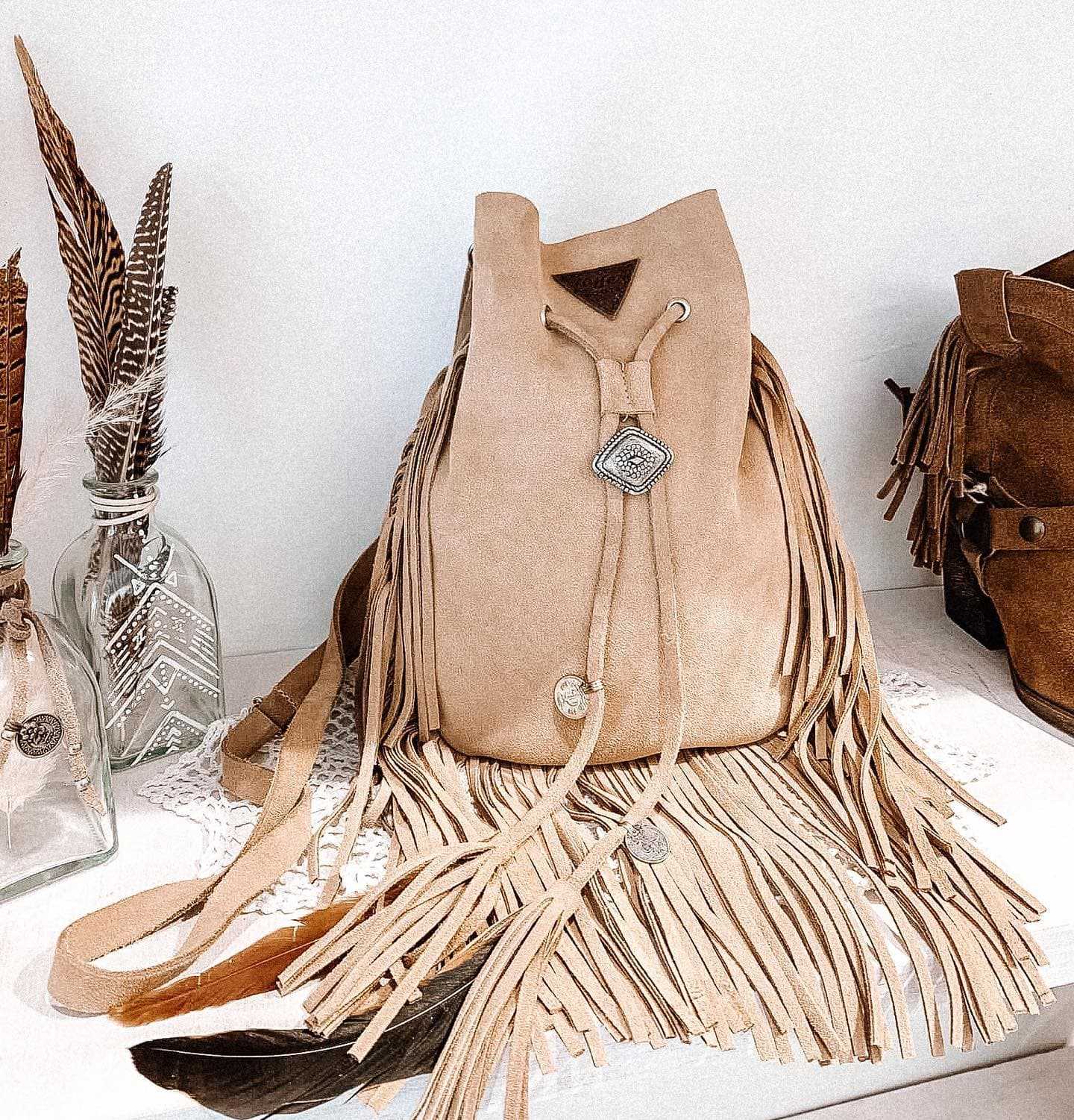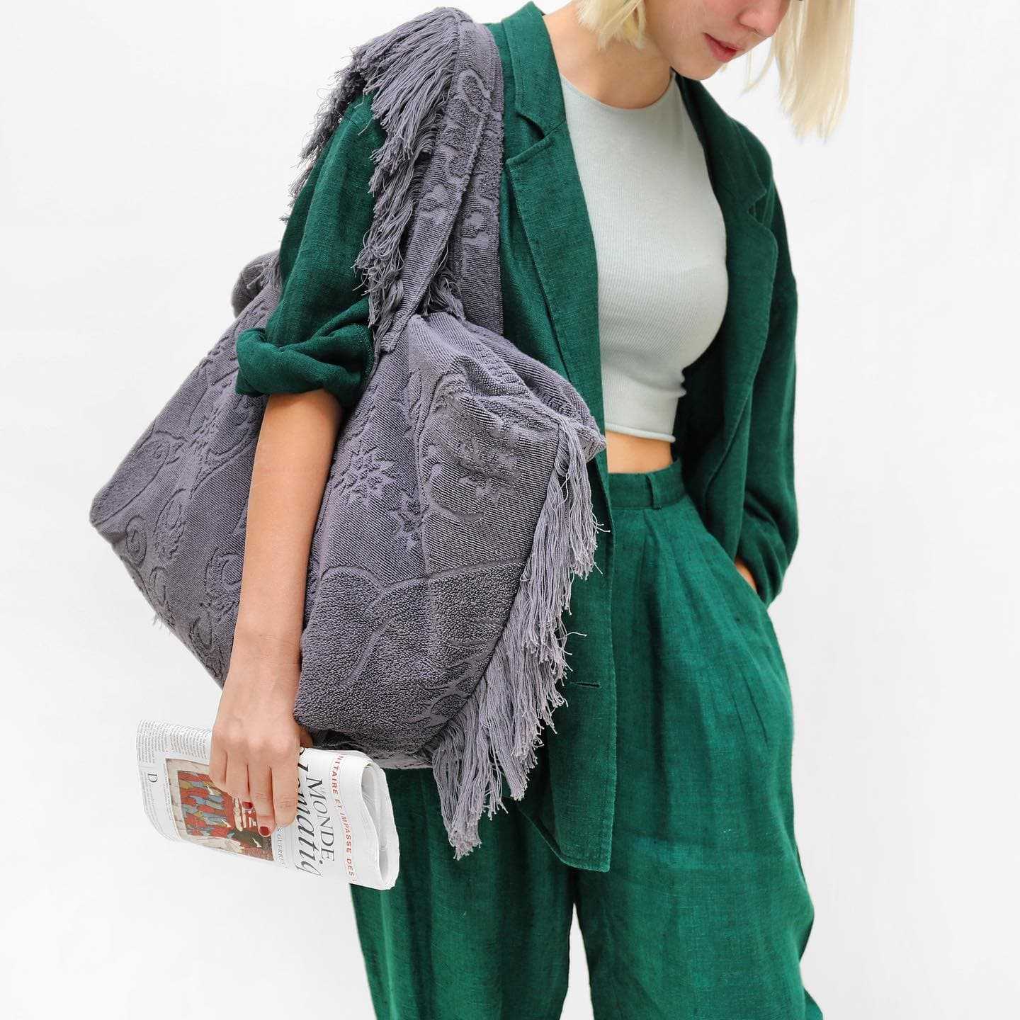 Вдохновленные богемной эстетикой, сумки с бахромой выглядят современно и дерзко. Их можно удачно комбинировать со стегаными куртками, расслабленными брючными костюмами, кожаными жакетами и трикотажными платьями. Еще один лайфхак от стилистов — использовать такие сумки в качестве ярких акцентов в монохромном образе или подбирать аксессуар в тон верхней одежде.
