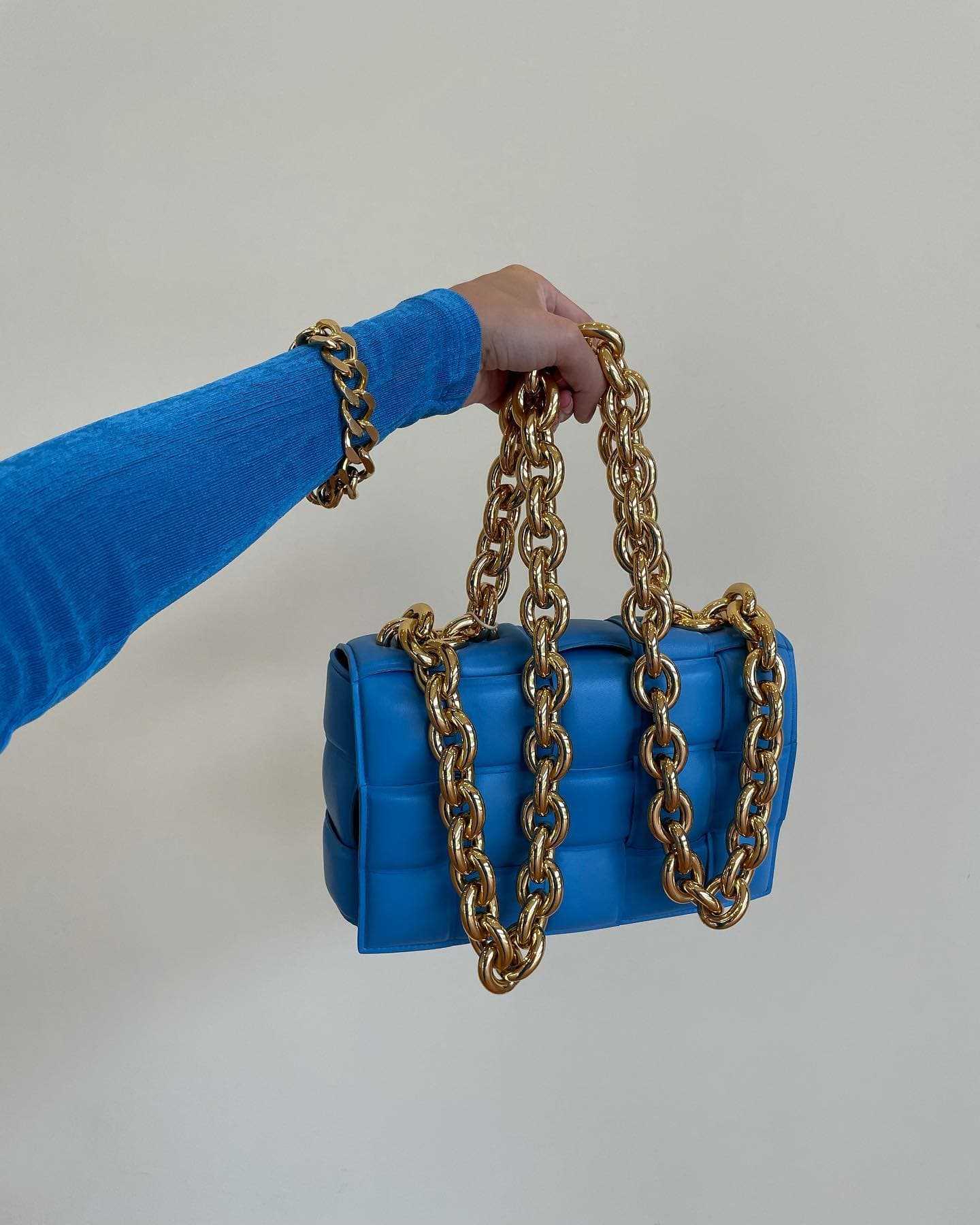 Клатчи и сумочки могут иметь любой дизайн, но цепочки вместо ручек актуальны всегда. Такие модели особенно популярны в неоновых оттенках фасона прямоугольник. Золотые ручки — ход, который до сих пор используют на подиумах, что не удивительно. Модные дома первой величины неоднократно выпускали такие модели и имели оглушительный успех. Золотая цепочка по сей день является классическим вариантом.