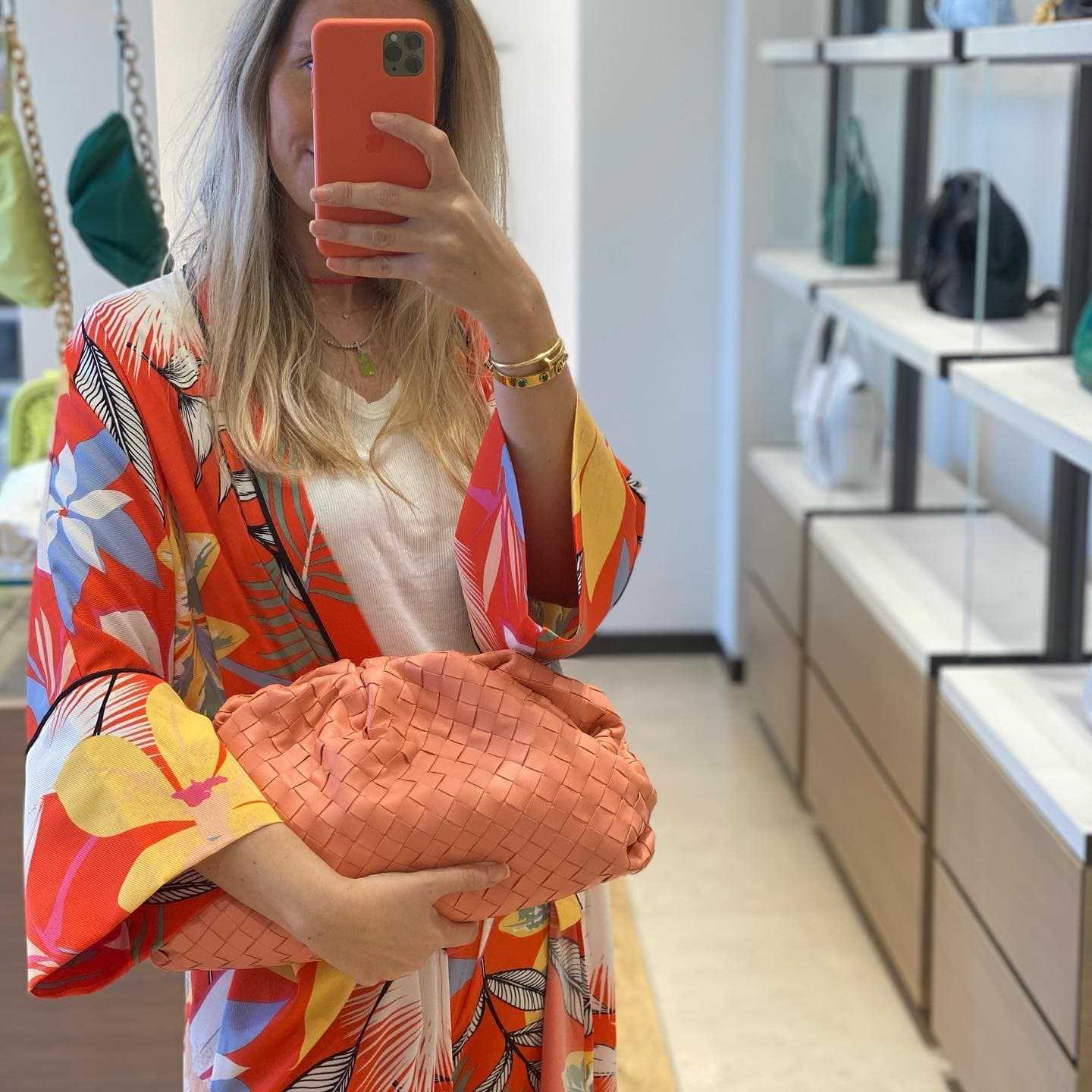 - В тон одежде. Данное выражение подразумевает не только однотонный тотал-лук включая сумку, а и монохромный принтованный образ.
