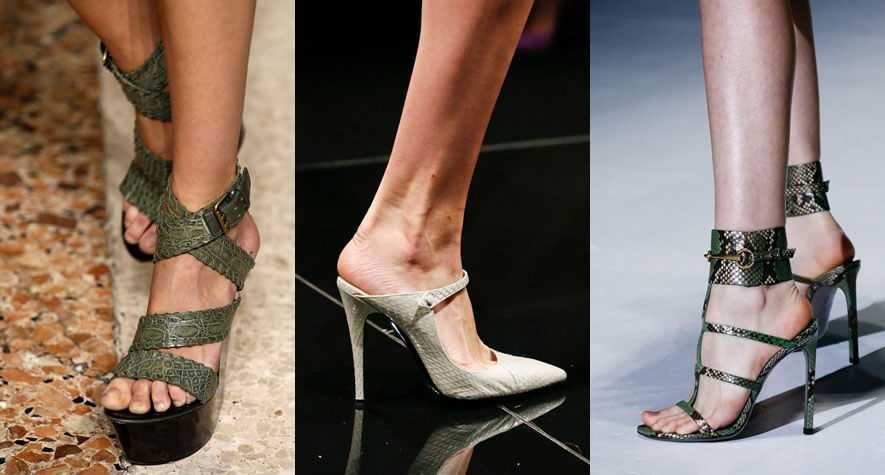 Большой популярностью в летнем сезоне будут пользоваться туфли и босоножки из экокожи с принтом змеи или аллигатора. Обувь, представленная Michael Kors, Sally LaPointe и другими модными домами, выглядит шикарно, а самое главное – при ее производстве не пострадало ни одно животное!
