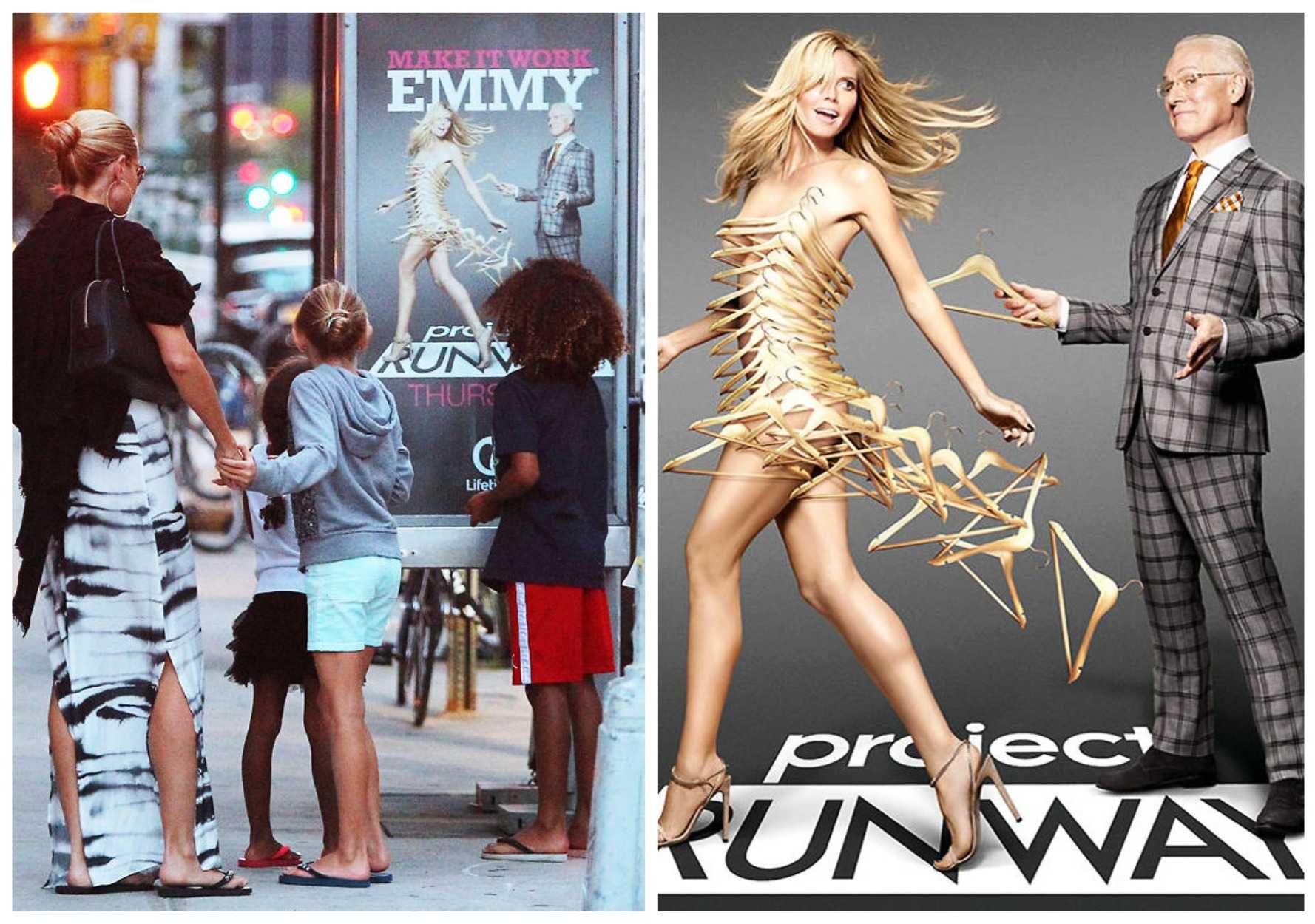 Успешная «бизнесвумен» и любящая мама не упускает любой возможности провести время со своими четырьмя детьми. Они часто устраивают весёлые прогулки, отменить которые не может даже ненастная погода. Однажды на улицах Нью-Йорка немецкая модель попала в неловкую ситуацию. Дети заметили большую афишу очередного сезона программы «Проект подиум», которую ведет Хайди. Удивлению и радости не было предела, когда они узнали свою маму. Сама звезда отреагировала на их восторги крайне смущённо, ведь на фото Клум позирует практически обнажённой. На ней надето платье из деревянных вешалок, которое не очень тщательно скрывает от взгляда прелести модели.