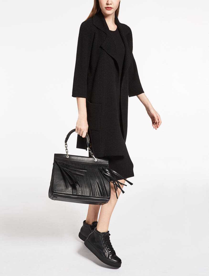 Бахрома теперь располагается не только по краям, она полностью покрывает одежду. Единственный минус таких вещей в том, что они добавляют визуальный объем, это подойдет далеко не всем.