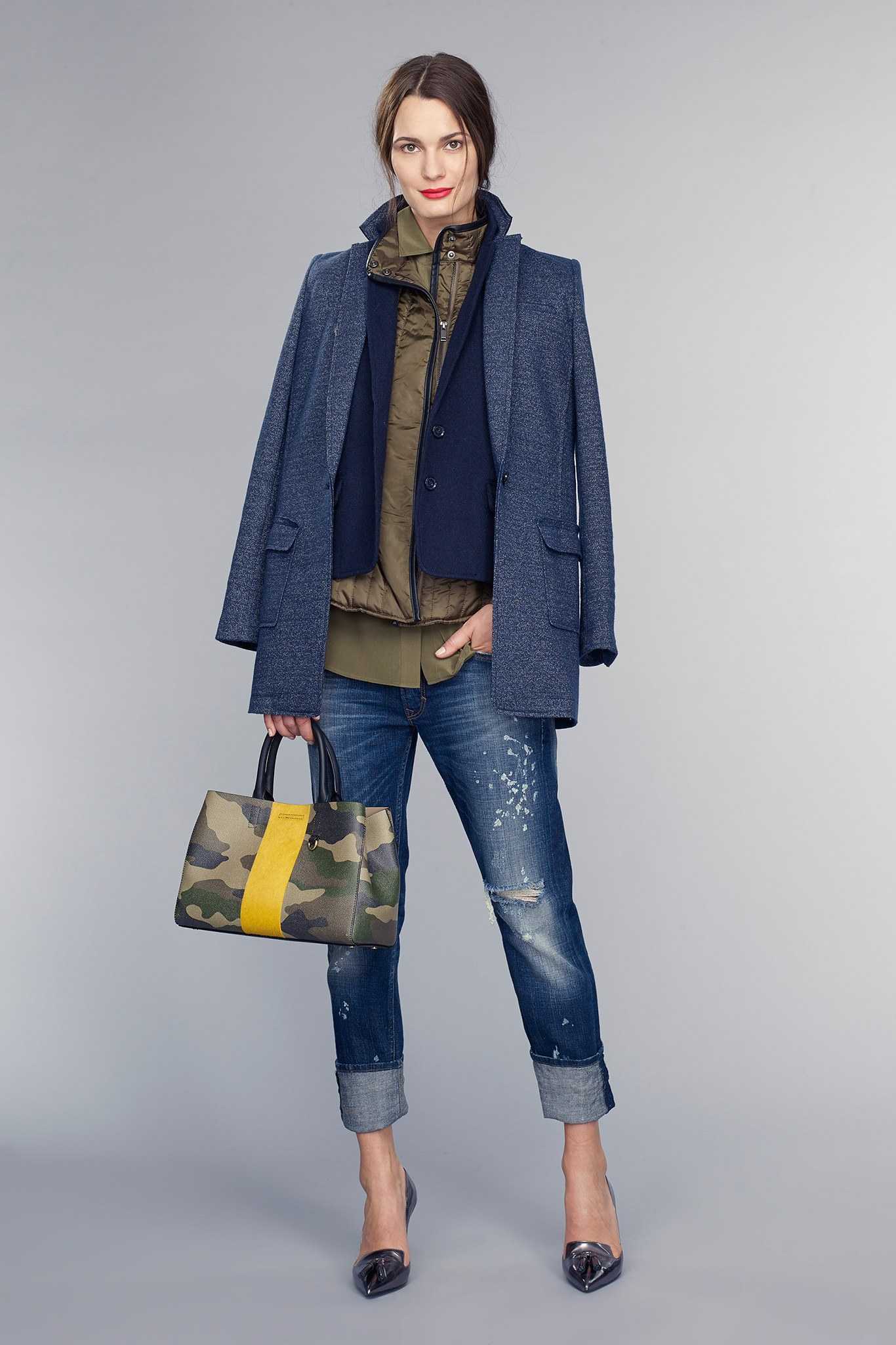 Стиль милитари вот уже несколько сезонов остается одним из самых трендовых направлений в женской моде. Классические вещи базового гардероба преображаются в оригинальные с помощью колористических решений и декора. Ярким представителем этого направления считаются куртки-парки, женские пальто-шинели, бушлаты, сюртуки и мундиры. Они великолепно выглядят в тандеме с брюками прямого кроя, облегающими джинсами в синем цвете.