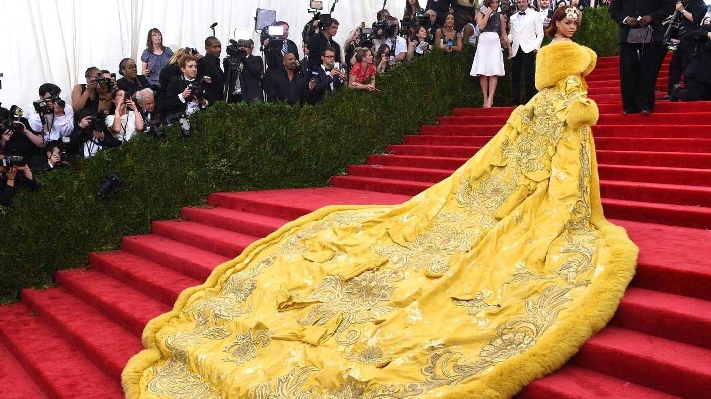 Рианна в желтом платье китайского дизайнера Guo Pei на Met Gala, 2015