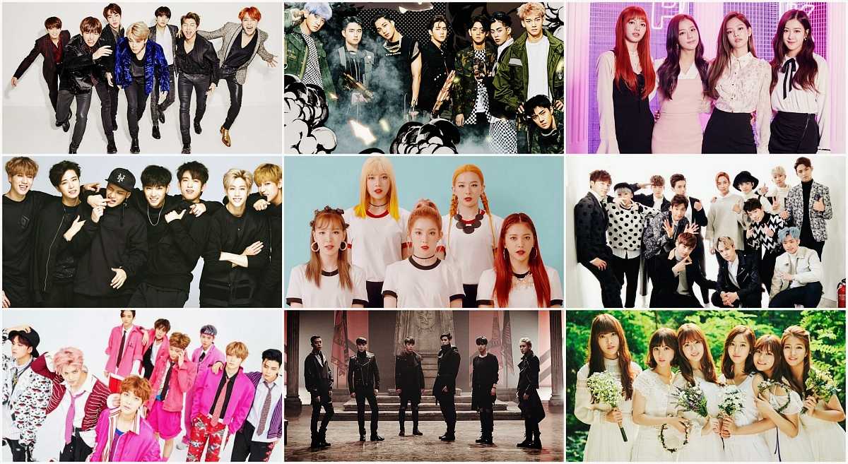 Это самые известные мужская и женская k-pop группы в мире. Кроме них достаточно популярны женские группы 2NE1, 4minute и Wonder Girls (upd.: все расформированы в 2017 году), Twice, Blackpink, Red Velvet, Gfriend, а также мужские корейские группы DBSK (TVXQ), EXO, Bangtan Boys (BTS) и Super Junior — последняя в 2015 году отметила 10 лет на сцене. Им на пятки уверенно наступают другие группы, получившие поддержку как корейских фандомов, так и огромного количества интернациональных фанатов благодаря Интернету — такие, как Seventeen, Winner, GOT7, B.A.P., Mamamoo, дающие концерты по всему миру.