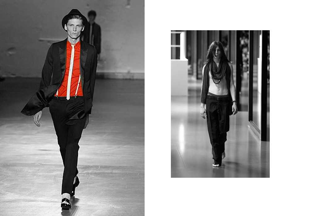 Думаю, разглядывая работы Слимана, вы уловите в этих образах что-то смутно знакомое — Пит Доэрти и Джейми Хинс, друзья дизайнера, часто появлялись в образах от Эди и породили моду на подобный стиль не только среди своих поклонников, но и среди других музыкантов. По словам самого дизайнера: «в то время просто не было подходящей одежды, и он стал шить для себя и своих друзей». Кстати, будучи страстным поклонником фотографии, он их не только одевал, но еще и круто фотографировал.