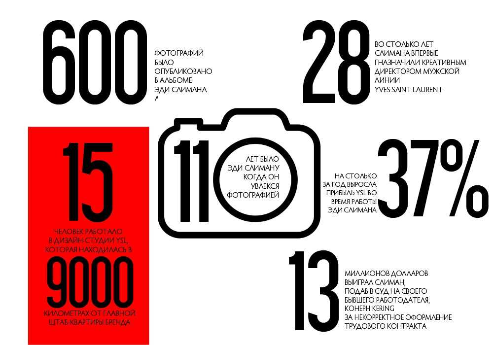 Он умудряется своим стилем затмить историю брендов, которые возглавляет: люди всегда покупают «Эди Слимана», и не столь важно, на кого он работает сегодня. И это — круто. А еще у него просто великолепные черно-белые фотографии