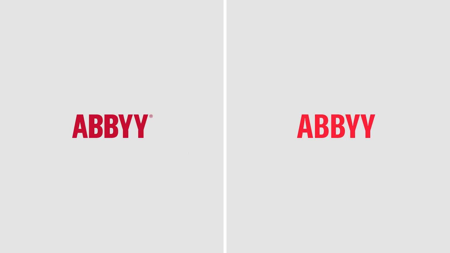 Мы быстро поняли, что не особенно хотим трогать логотип. Во-первых, люди его любят. Во-вторых, само название компании довольно сложное, труднопроизносимое. Хотелось оставить понятный „ключ“ к бренду, нечто почти неизменное. В-третьих, логотип был набран шрифтом без засечек (это изначально был Franklin Gothic) в очень американском духе, а ABBYY ориентированы именно на международный рынок. Несмотря на русские корни, это американская компания, конкурент Microsoft и IBM. Это мы также хотели сохранить.