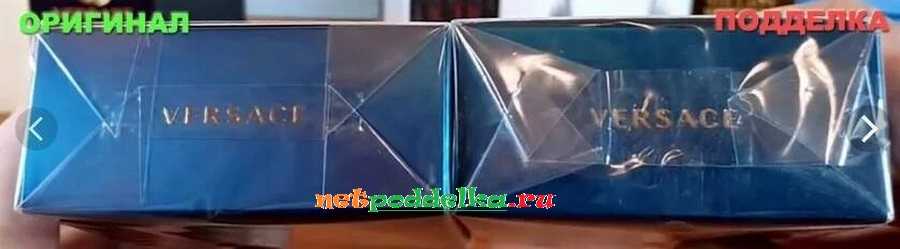 Оригинальные духи Versace разливают в стеклянные флаконы. При внимательном рассмотрении оригинальной и поддельной емкости можно увидеть следующую разницу: