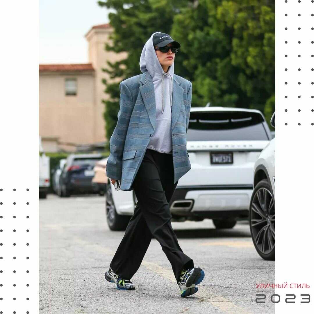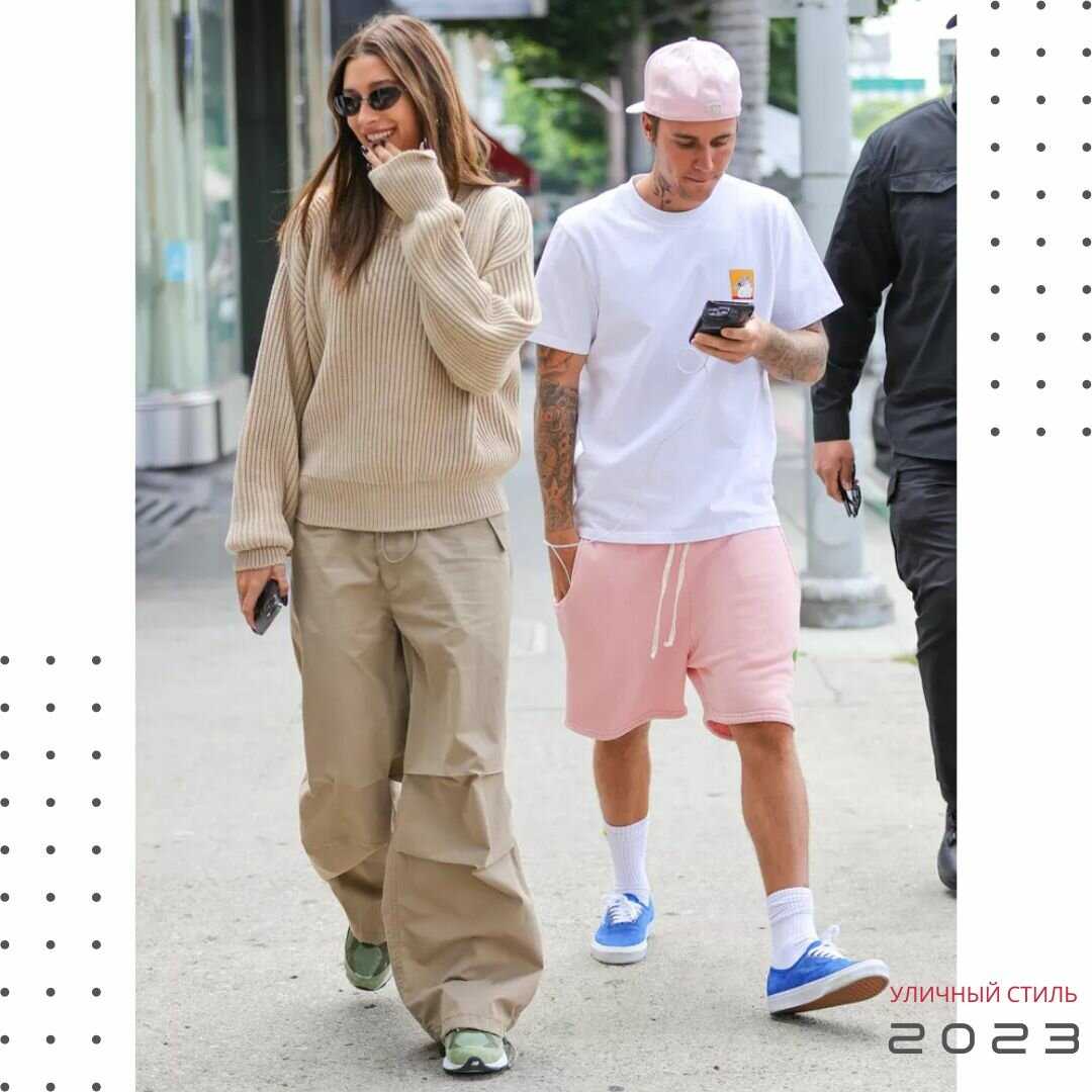 Например, в январе 2022 года Бибер была сфотографирована в черных брюках, простой серой толстовке (с поднятым капюшоном) и клетчатом пиджаке поверх. Аксессуары были минимальными — черная бейсболка и солнцезащитные очки, а завершали образ, судя по всему, поношенные кроссовки. Это говорит о том, что «я не обычный папа, я крутой папа».