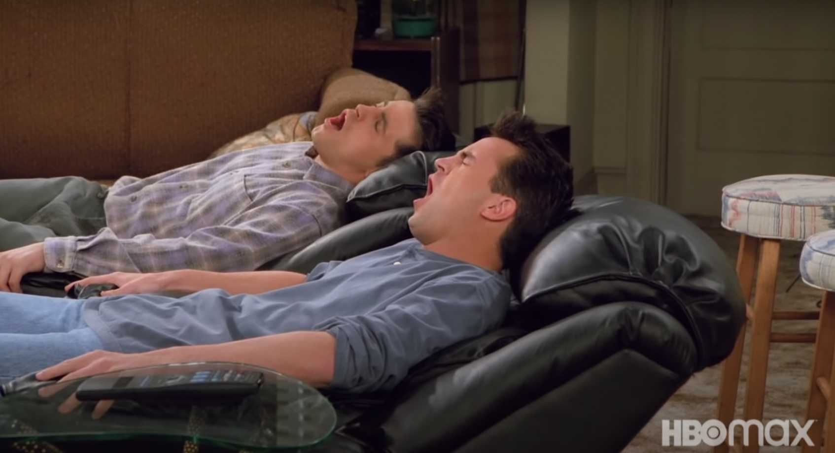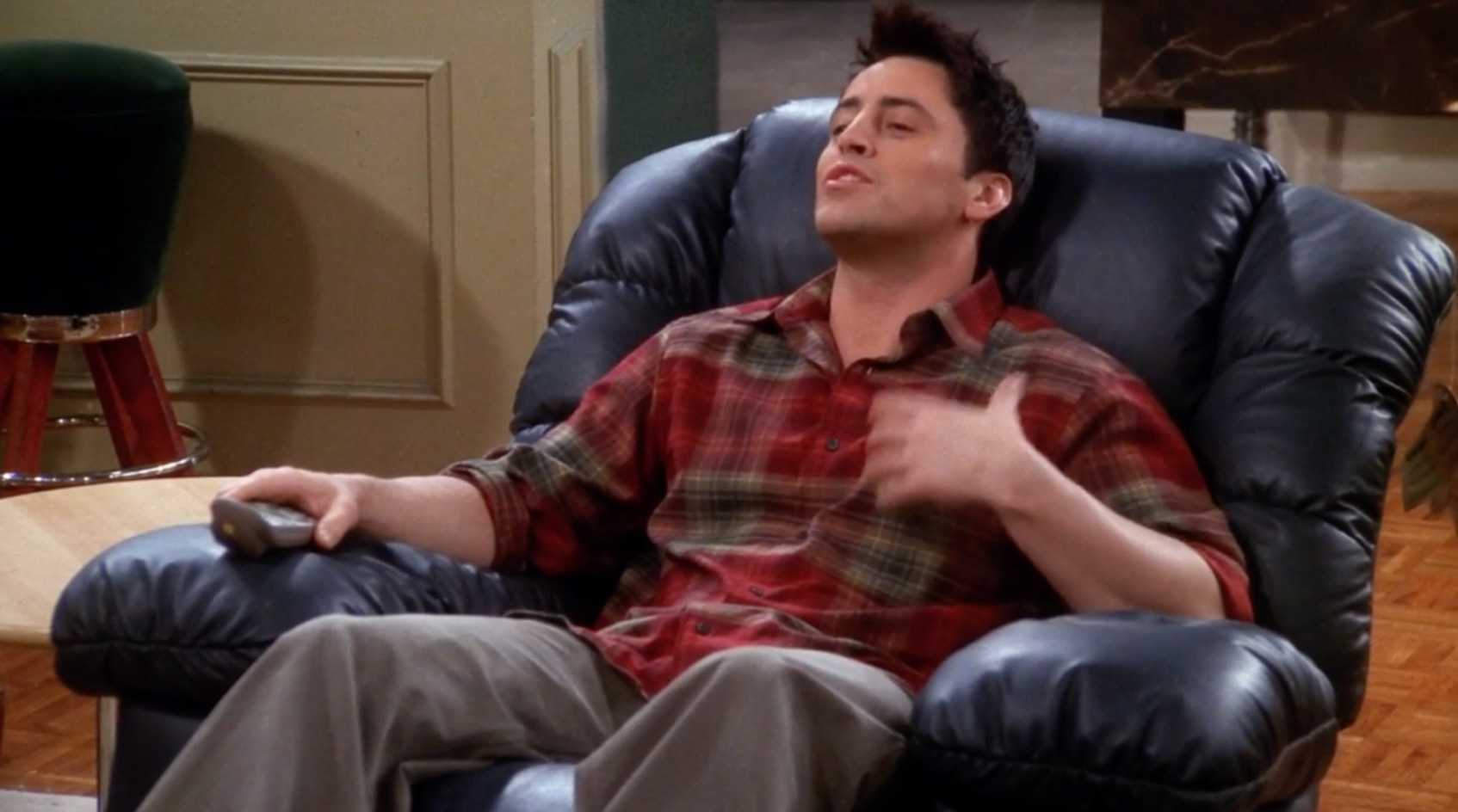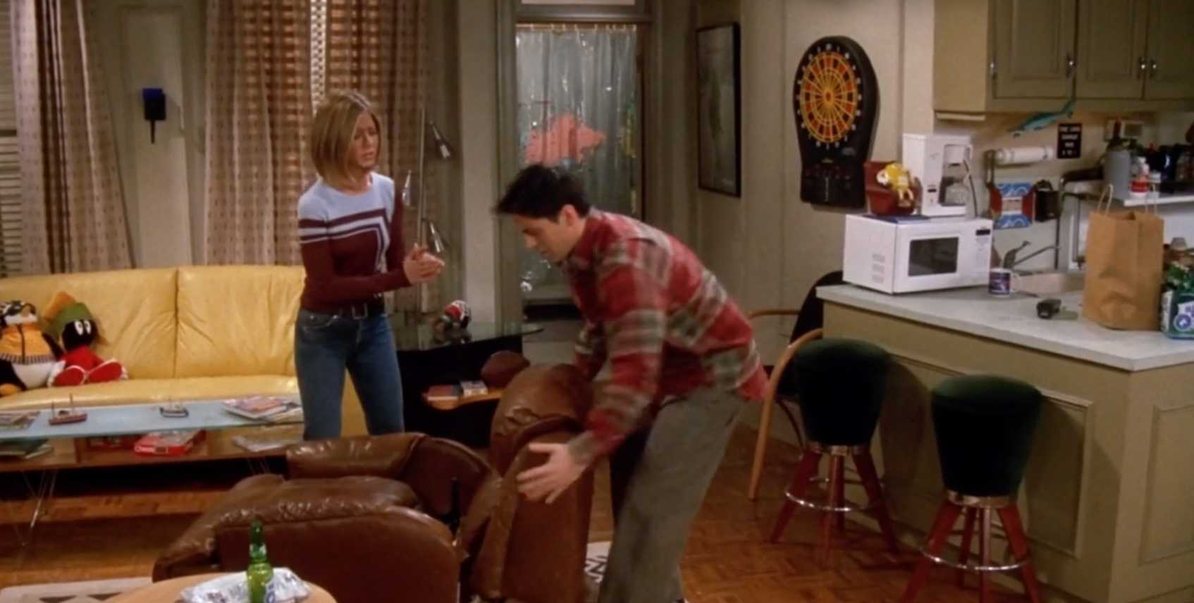 В 15-й серии 2-го сезона под названием «Эпизод, где Росс и Рэйчел… ну вы знаете» Джоуи покупает кресла для себя и Чендлера. Они так нравятся ребятам, что те проводят сутки напролет, не вставая с них, наслаждаются, откидывая спинки кресел. Герои заказывают пиццу к Геллерам — Моника приносит им еду. Чтобы не ходить в туалет, друзья ничего не пьют — лишь бы не покидать кресла.
