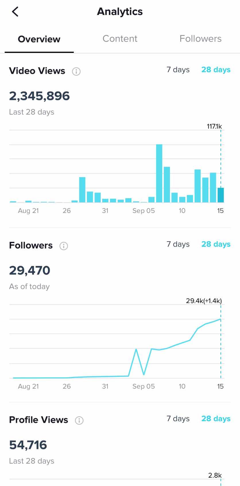 Я целый месяц регулярно использовал Tik Tok, пока писал эту статью. Создал анонимный аккаунт, про который никому ничего не рассказывал и начал создавать контент. За последние 28 дней мои видео в тик ток посмотрели более 2 300 000 человек и получили более 280 000 лайков. Я достиг таких показателей в основном за счет размещения видеороликов с записками, бананами и игральными картами.