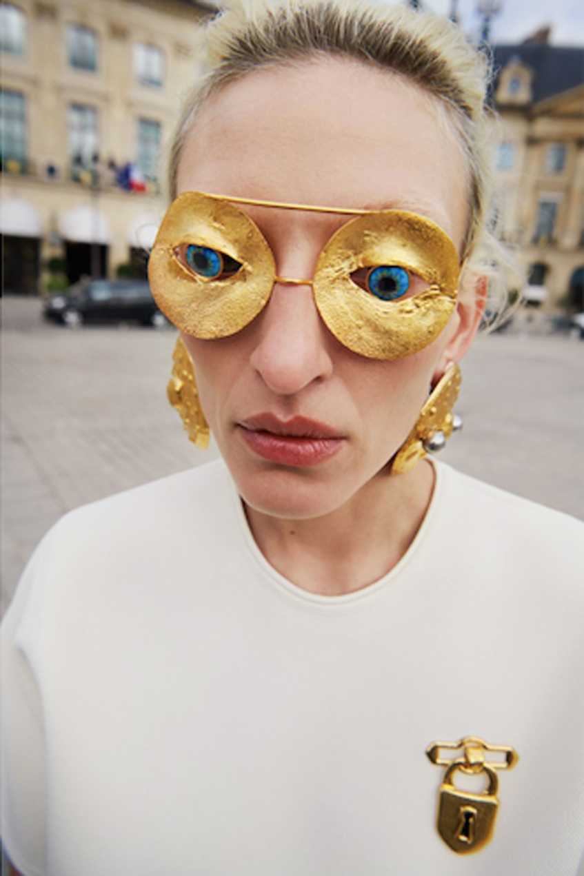 После прихода Роузберри вещи Schiaparelli все чаще стали мелькать в модных съемках. Дизайнер умело сочетает архивные мотивы и хайповые темы.