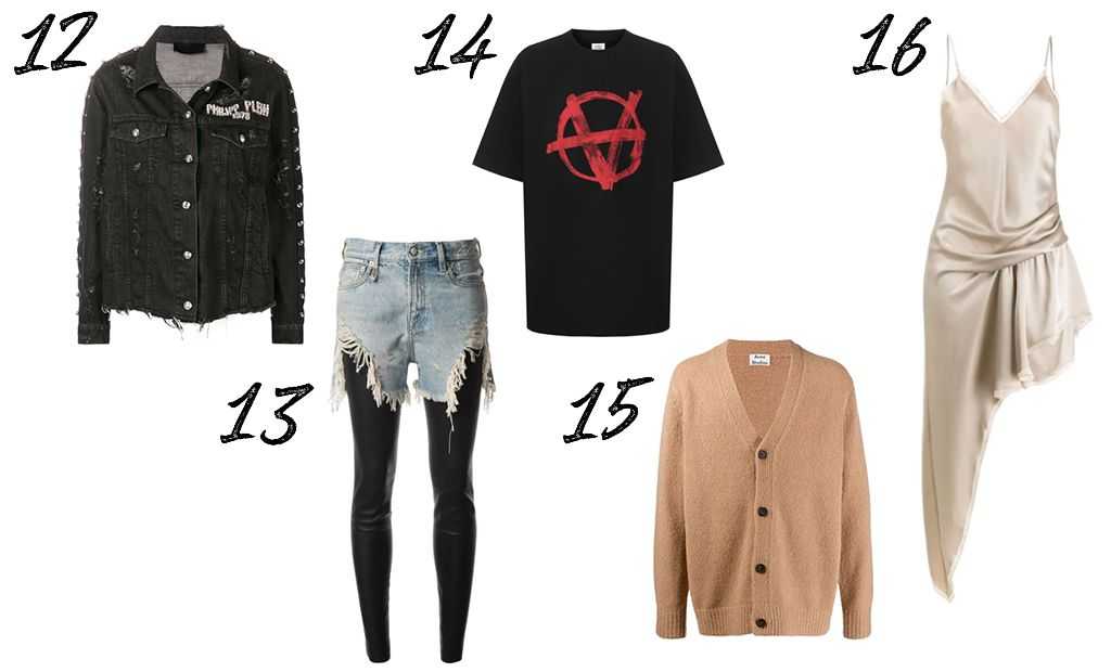 12 — Philipp Plein, 13 — R13, 14 — Vetements, 15 — Acne Studios, 16 — Alexander Wang
