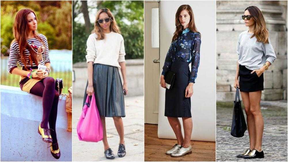 Не подойдут также под них и сильно расклешенные брюки! А вот список вещей, которые действительно создадут неповторимый образ для любой модницы, с чем можно носить оксфорды: узкие джинсы, укороченные модели джинс, леггинсы, шорты, длинные платья (в этом случае выбор следует делать осторожно), мини-юбки, деловой костюм (самый удачный вариант), а также гольфы и короткие платья