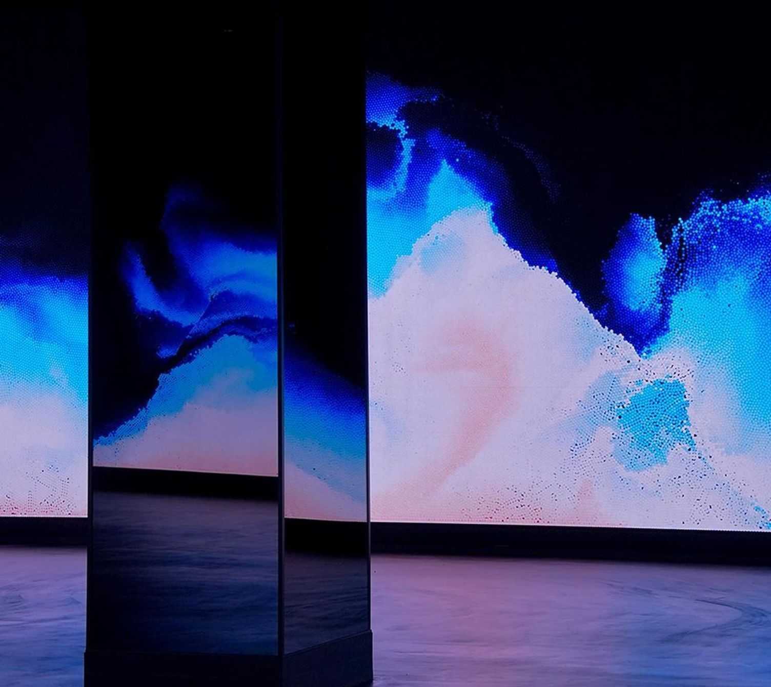 Цифровой художник Максим Жестков использовал серию алгоритмов для перемещения и столкновения миллионов сферических частиц для своей инсталляции «Волны» в галерее W1 Curates в Лондоне, в результате чего получилась захватывающая и увлекательная работа.